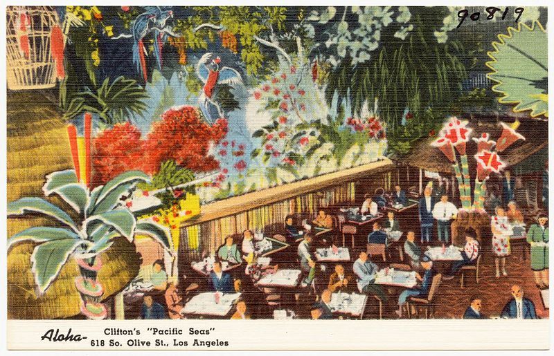 Not only is Clifton’s Cafeteria one of the oldest surviving cafeteria-style eating establishments in L.A., it was home to the Los Angeles Science Fiction League, who met there Thursday nights. In attendance were SF bigwigs Robert A. Heinlein (Stranger in a Strange Land), Leigh Brackett (The Empire Strikes Back), a pre-Scientology L. Ron Hubbard, and, last but not least, Ray Bradbury (Fahrenheit 451).