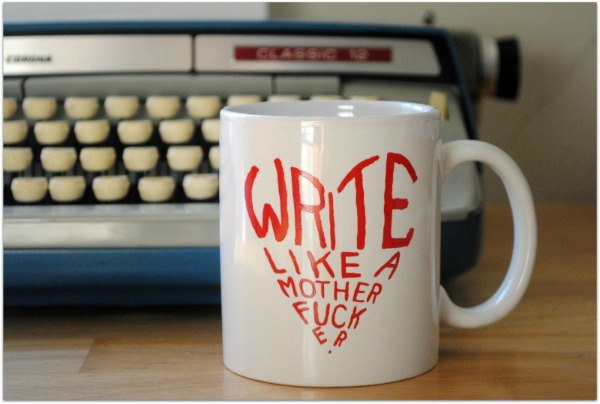 A Dear Sugar bon mot in mug form. In the original post of the advice column from Cheryl Strayed (Wild: From Lost to Found on the Pacific Crest Trail), Strayed advised a depressed young writer to get humble, do the work, and write like the aforementioned expletive.
